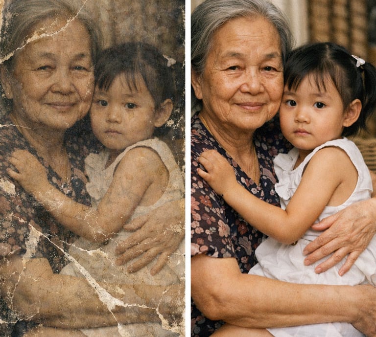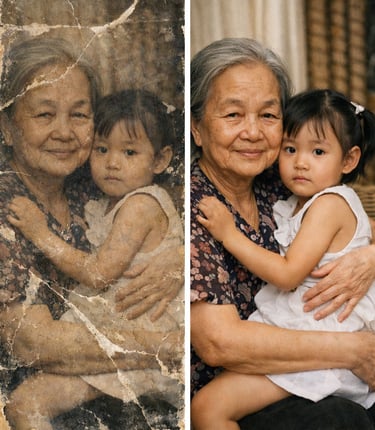 Time is not always kind to prints. Photos fade, tear, and discolor, often becoming fragile as their meaning grows more important. Our work honors those moments. Using advanced restoration techniques and a careful, human touch, we restore damaged photographs with patience and intention. We never rush, never overcorrect, and always respect the original.